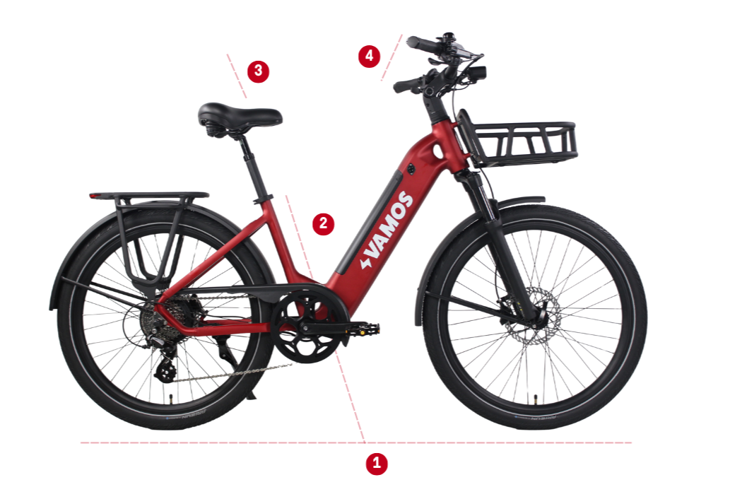 Vamos Bikes are classified as electrically power-assisted cycles with a continuous rated power of 500 watts. The motor automatically disengages once the bike reaches a speed of 25km/h. If needed, the power output can be further restricted to comply with specific regulations. Throttle use is permitted only on private property and must be disabled when riding in public spaces.