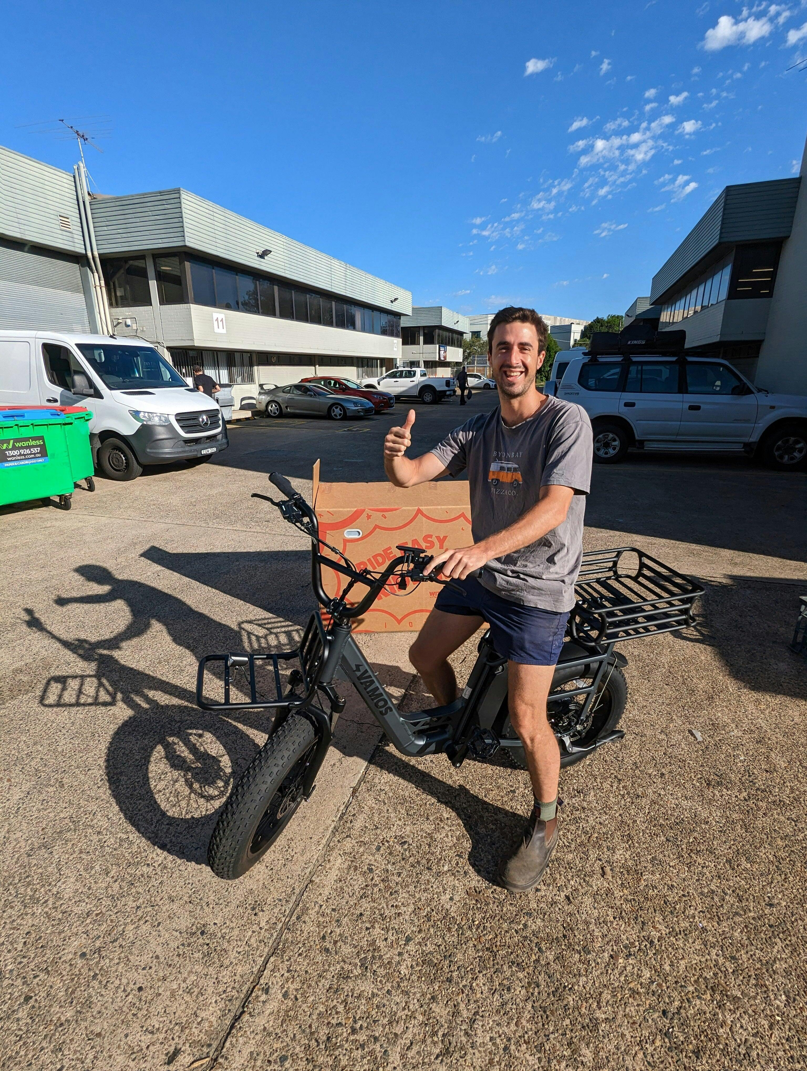 Vamos Bikes is your go-to destination if you're searching for quality cargo electric bikes in Australia. We offer a range of cargo e-bikes designed to meet the diverse needs of our customers. Our flagship model, the Vamos Amigo, is renowned for its versatility and robust design, making it ideal for transporting goods or passengers across various terrains. With features like fat tyres, front fork suspension and substantial cargo capacity, our cargo electric bikes provide reliable performance in any environment.