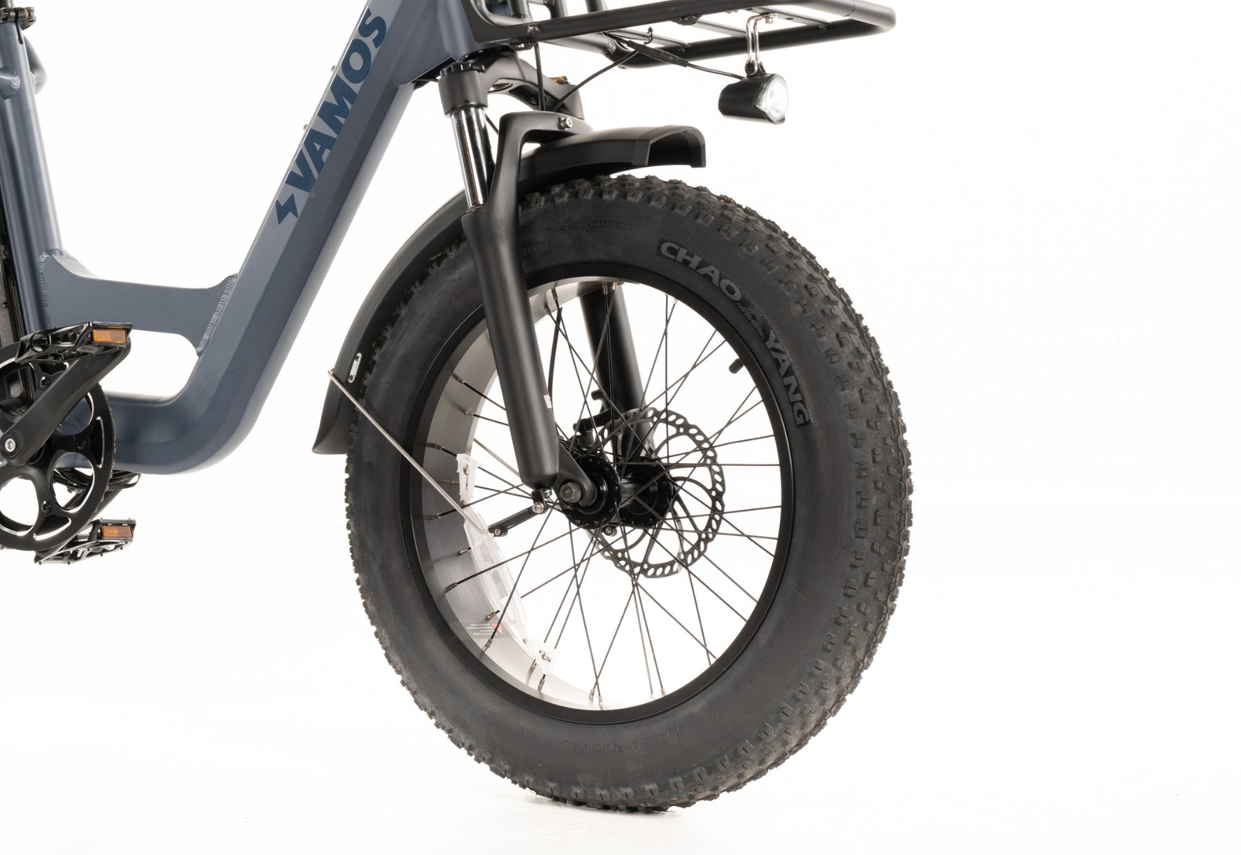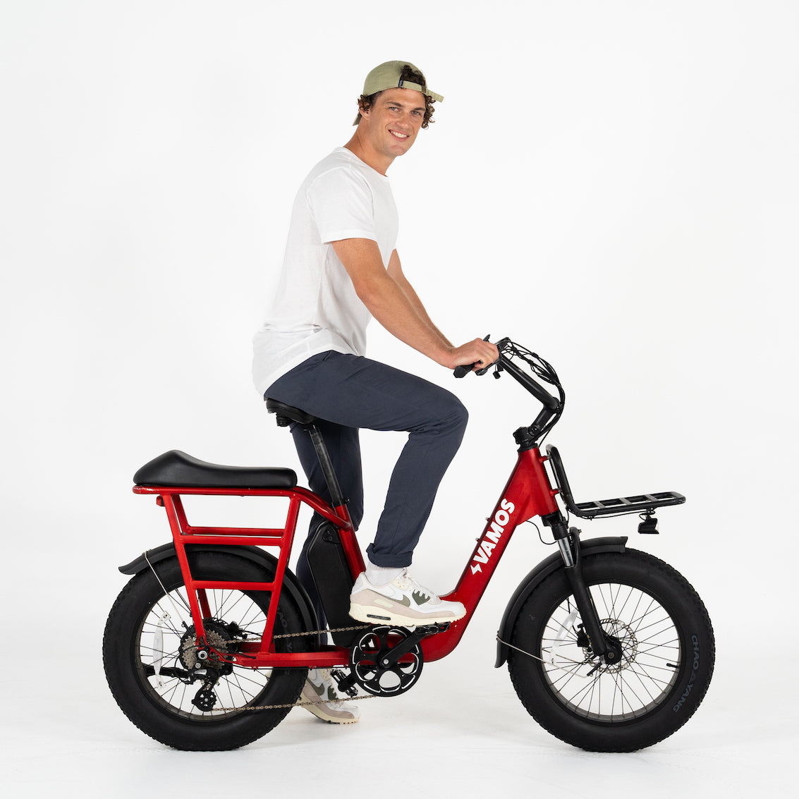A cargo ebike is specifically designed to carry heavy loads, making it an excellent choice for individuals who need to transport goods, groceries or passengers. At Vamos Bikes, our cargo e-bikes, such as the Vamos Amigo, have features like sturdy frames and ample storage options, including front and rear racks. This versatility allows you to easily navigate urban environments while reducing reliance on cars for short trips.